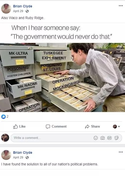 Anti-federal government meme from Brian Clyde’s Facebook page