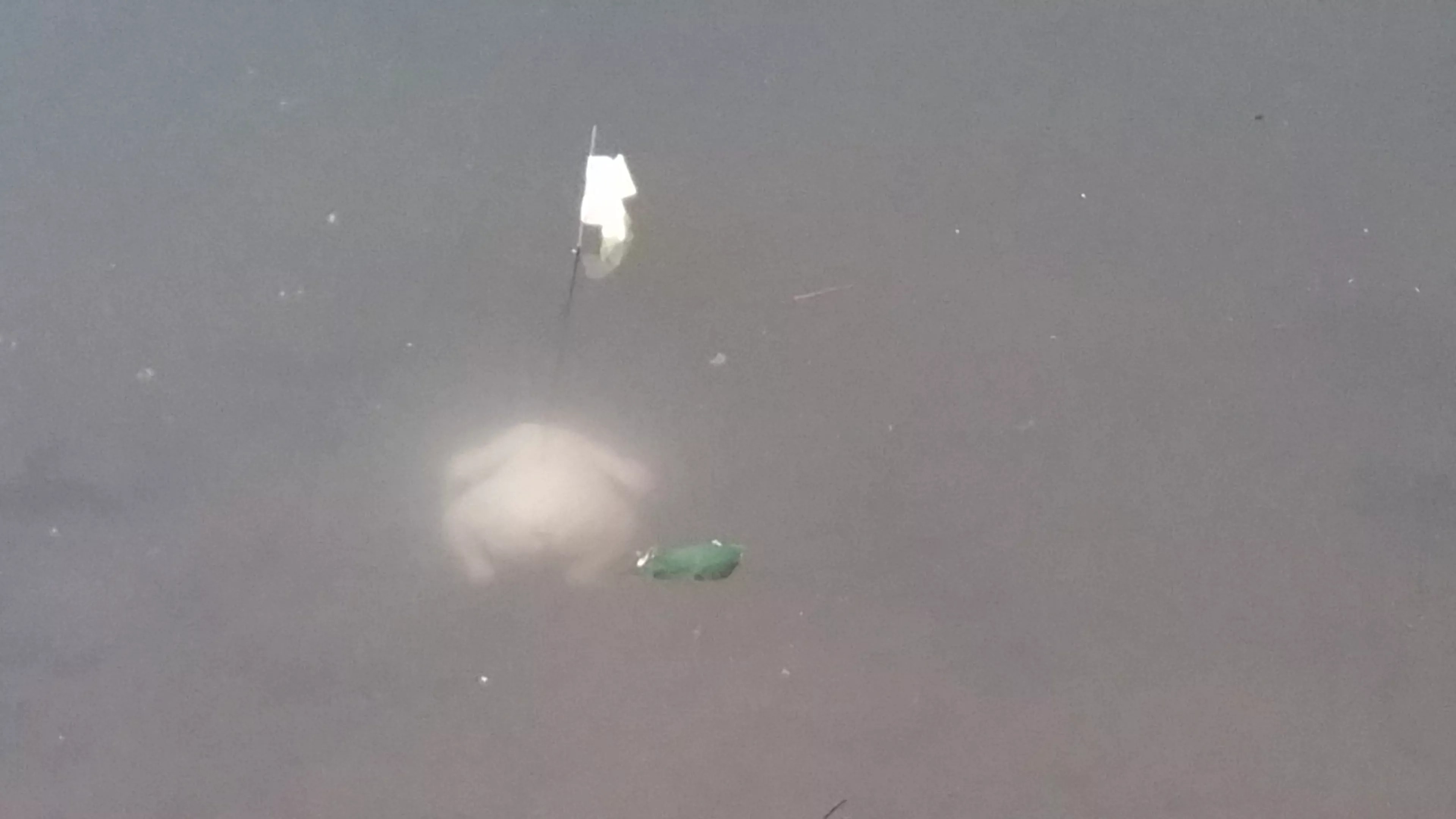 Eleven days later, there’s no sign of either test bird. The floating keychain is near where the second chicken hit the water, but the carcass has settled in the deepest part of the waterway. The float test is a bust. So far, the only fact established here is that meat placed into the creek can quickly slide out of view in the murky, deceptively deep water, which was already obvious.