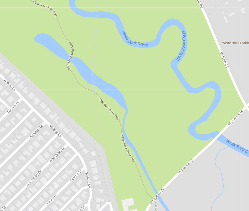 This tributary is a bad place for someone coming from outside the park to dump a body. It’s a long march from the nearest place to park, on West Lawther Drive, to where police say passersby saw the corpse. Someone in the woods could have murdered him and left him to float. There are no clear signs of habitation, and the area is not known for hosting a concentration of homeless people. The underpasses where Dallas Area Rapid Transit trains pass overhead show no signs of habitation — an almost rare absence, if you’re familiar with bridges along Dallas’ roadways.