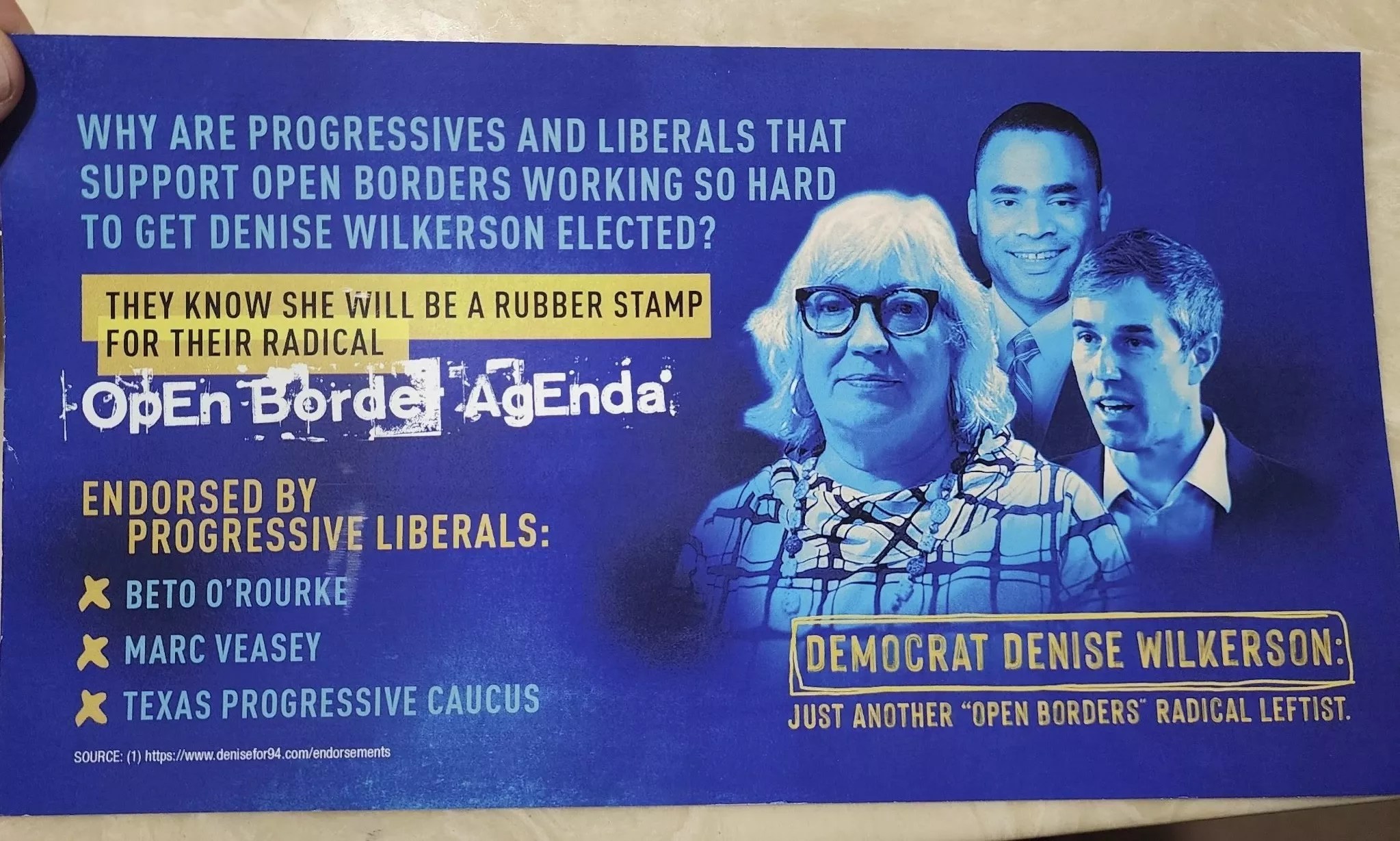 Wilkerson told the Observer she was “insulted” that it initially seemed like her Republican opponent wasn’t campaigning against her, but a mailer sent out during early voting accuses her of being a “radical leftist.”