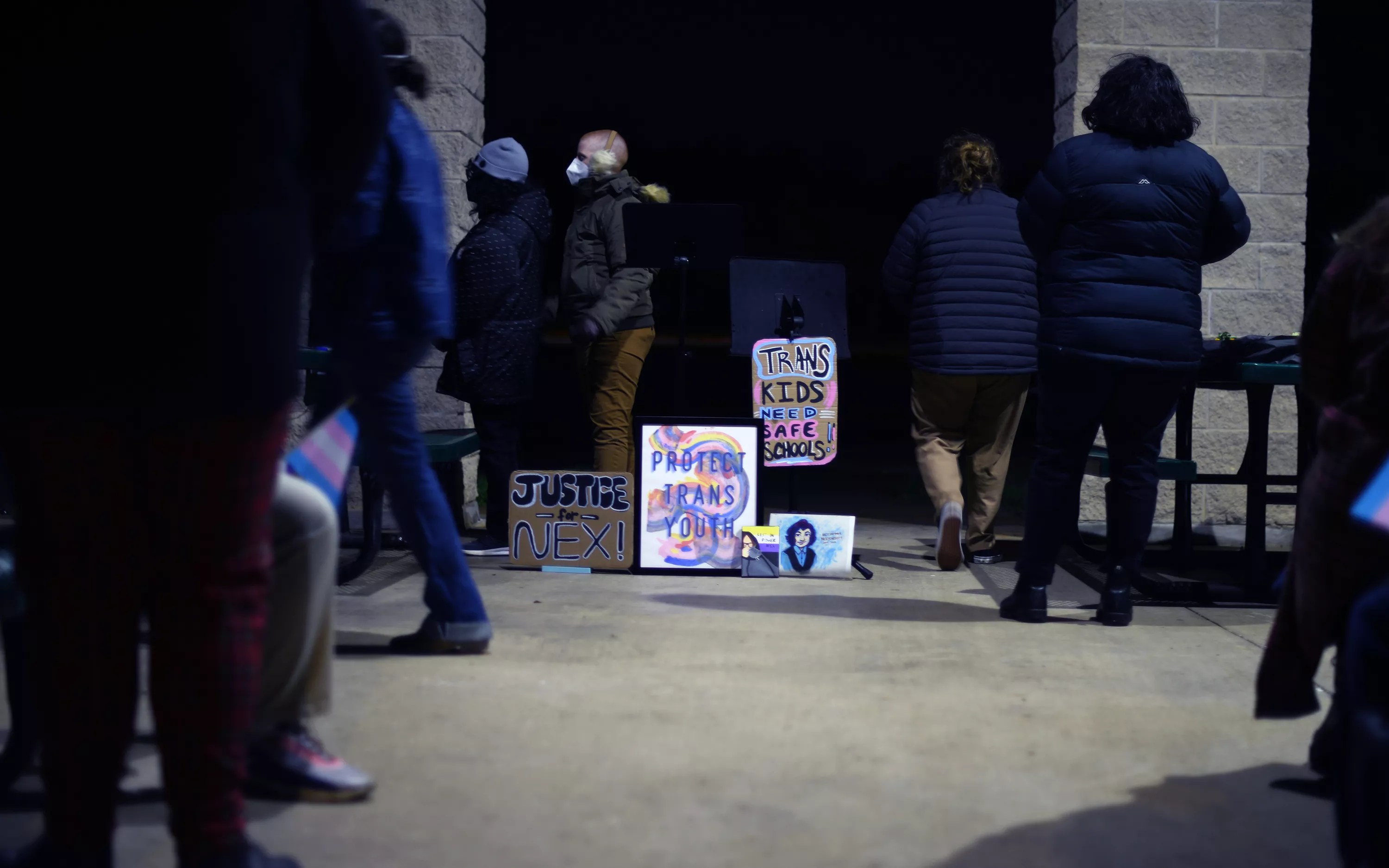 A crowd gathered in cold weather to honor the life of Nex Benedict in Denton on Thursday night.