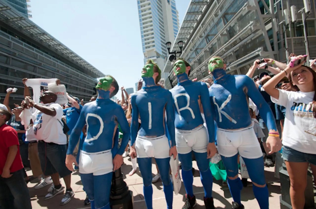 Fans of Dirk Nowitzki in blue as the Dallas Mavericks kicked off their parade through Dallas at the Dallas Convention Center in 2011.