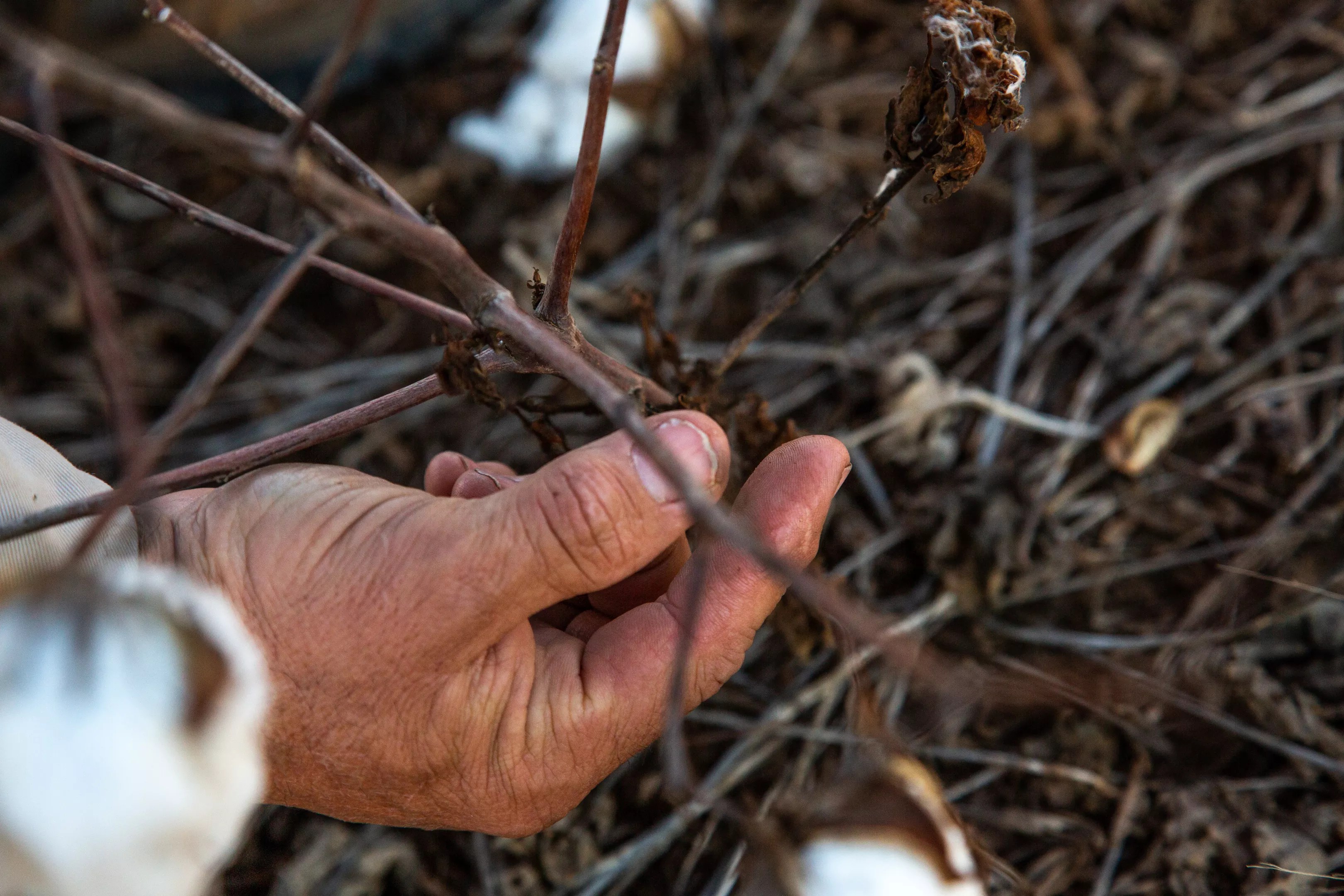 Healthy cotton yields three or four bales per acre, and McAlister says he has to make a bale and a half to two bales per acre for a crop to be worth harvesting. This year, he guesses his fields would have produced about a quarter bale per acre.