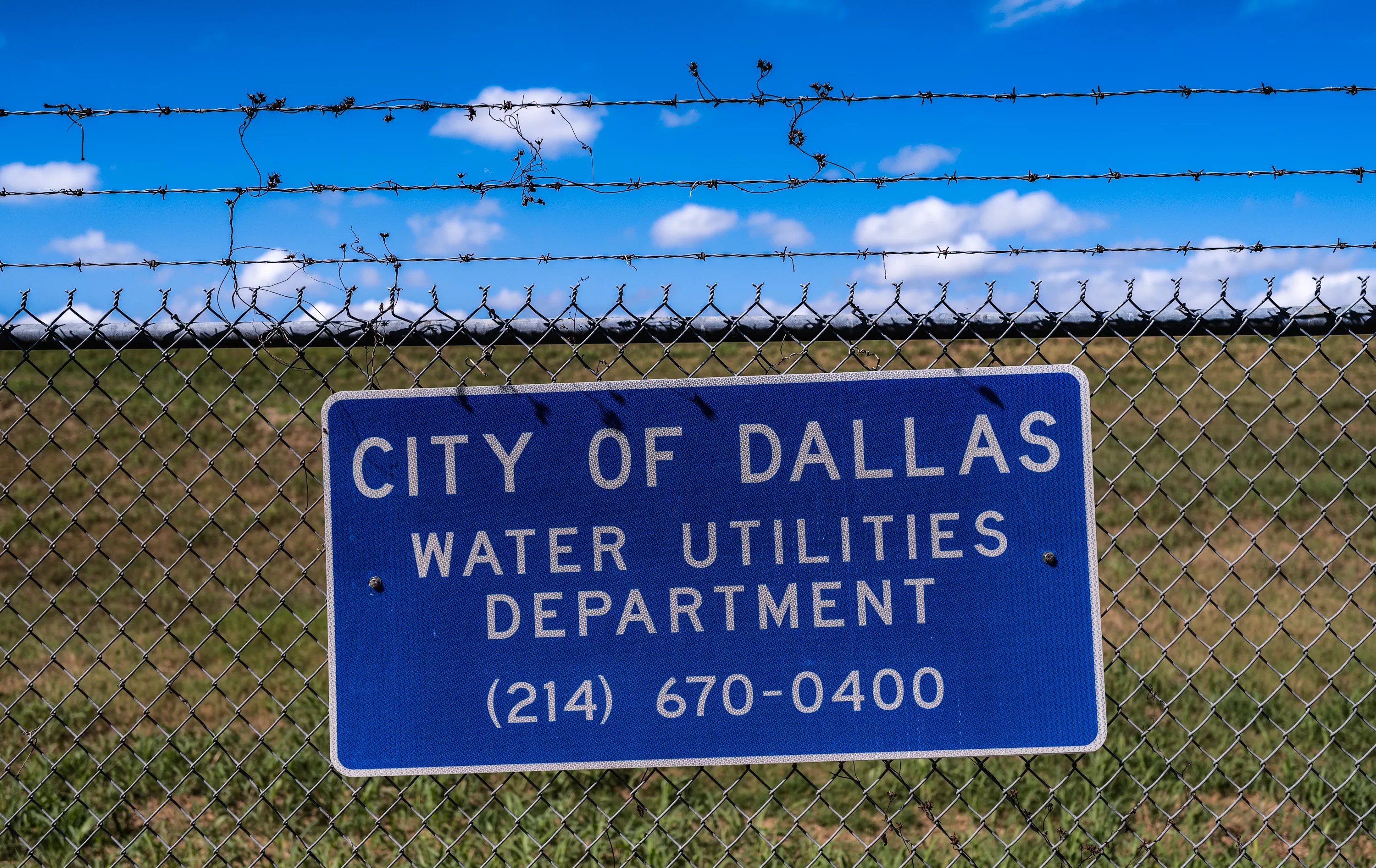 A gate surrounds the Dallas Southside Wastewater Treatment Plant near Sandbranch.