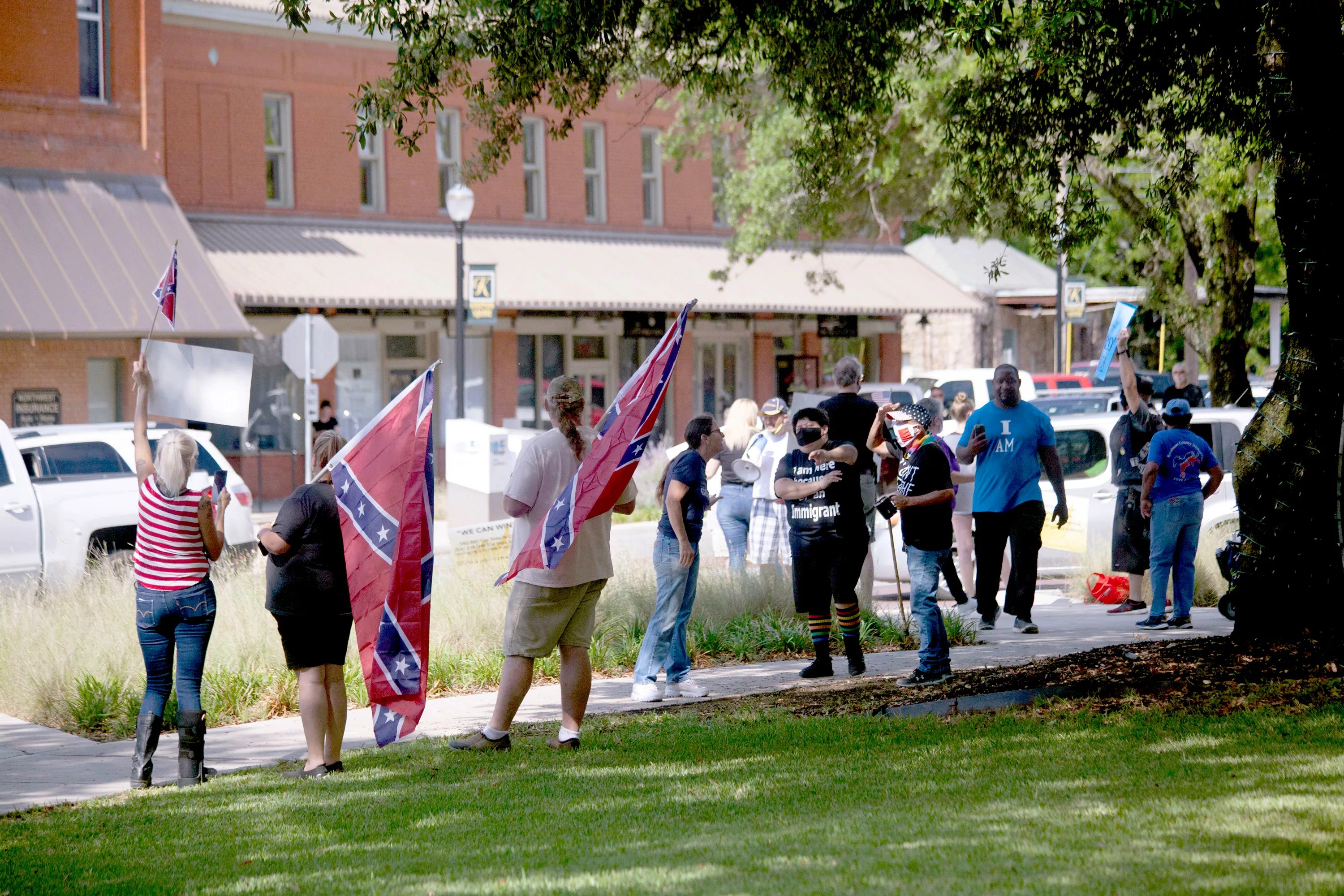Later that month, protesters in nearby Gainesville landed in legal trouble for stepping off the sidewalks and onto the street during a march against the local Confederate statue, which stands on the corner outside the Cooke County Courthouse. The police department charged three protest organizers with Class B misdemeanors.