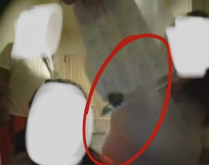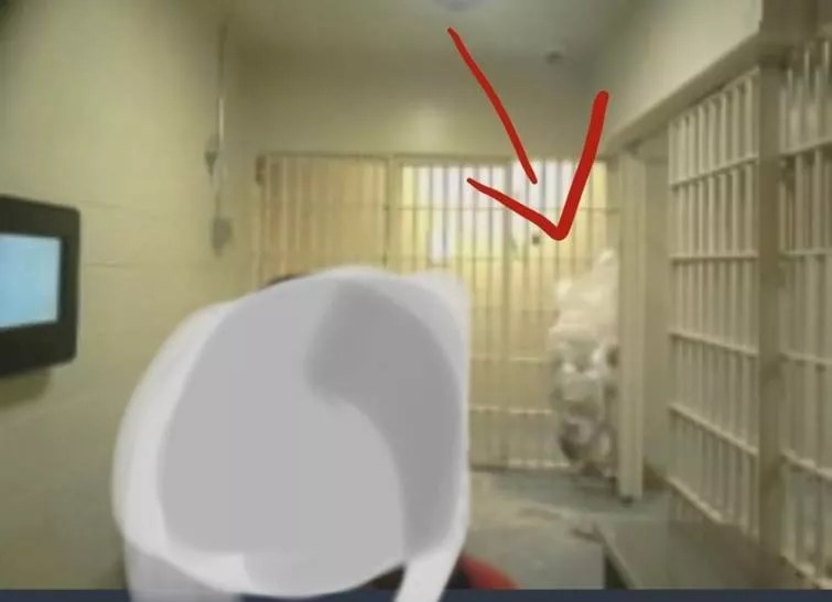 In a screenshot captured by activist Jessica Luther Rummel, a Denton County Jail inmate appears to hold up a patch of black mold that she scraped from her cell.