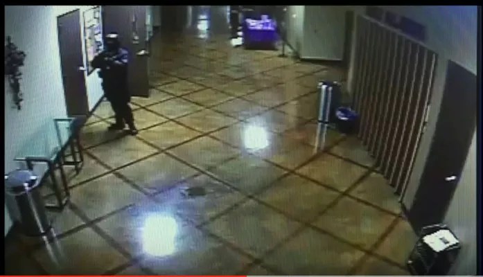 The killer slowly walks through the halls of the Creekside Church of Christ in Midlothian. The figure is wearing police tactical gear and holding what appears to be some sort of hammer. It’s just after 4 a.m. and the church is empty, allowing the intruder to walk through the halls seemingly without care, opening and closing doors as if he were searching for someone or something.
