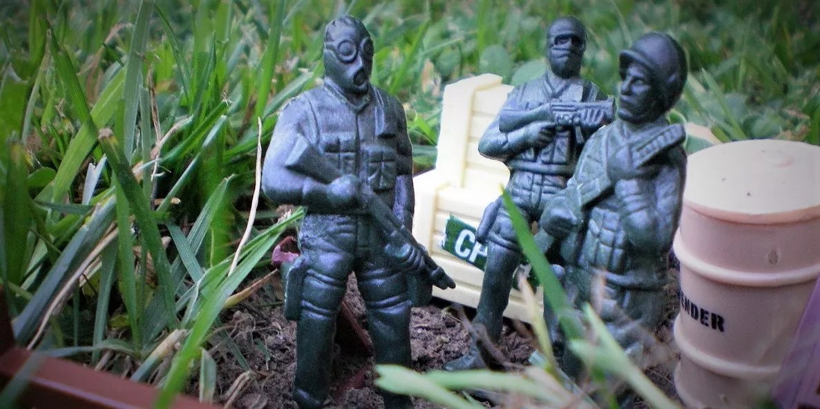 The soldiers, we agreed, were communists. We blew them to bits, launching them into the air with an amazingly violent explosion, loud enough to cause men in T-shirts and hard hats to come running at full tilt from a nearby pipeline project. One boy’s eye was slightly injured, I hope not permanently. We blamed the explosion on bad children from another neighborhood.