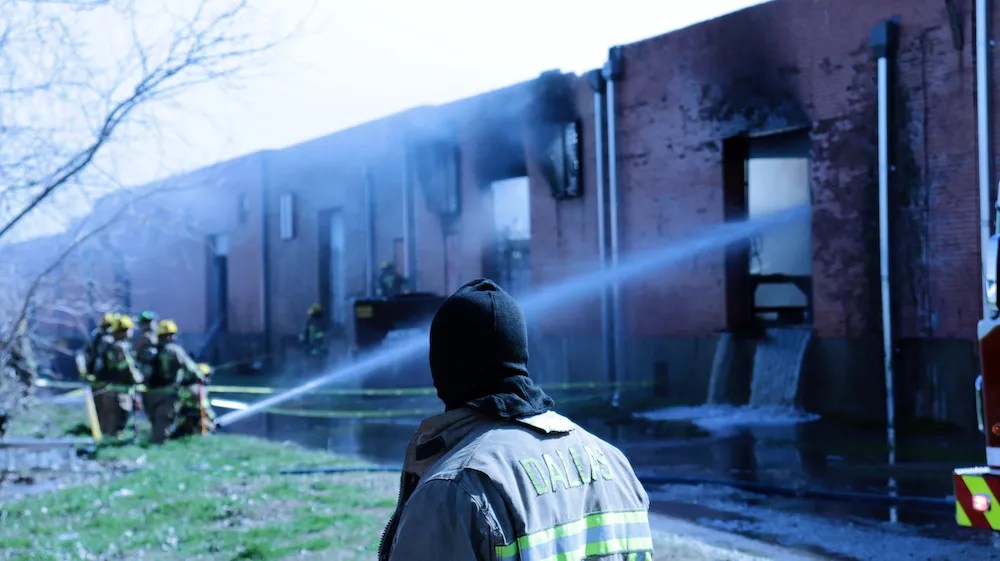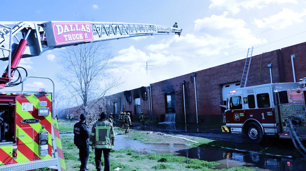 Dallas firefighters battle a three-alarm blaze in the Design District.