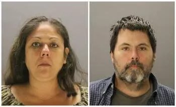 Nina Crawford, 38, and Thomas Romero, 46, left the dog in the floorboards of their truck as the went into the home improvement store to switch price tags so they could buy items cheaply, then return them at their higher retail price, according to Carrollton PD. The dog found a packet of heroin and ate it, according to police.
