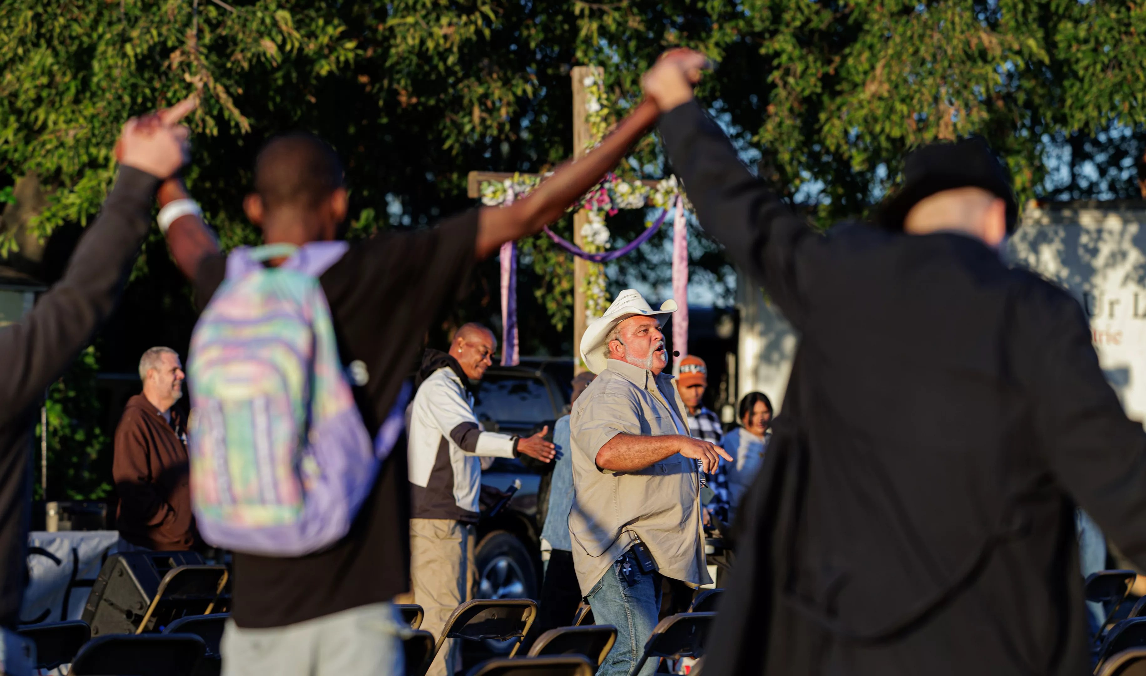 As the sun beat down on everyone that hot fall Sunday, the circle of people began to disperse. Some went to the food line to fill their stomachs with BBQ chicken sandwiches and macaroni and cheese, while others hung back to pray.