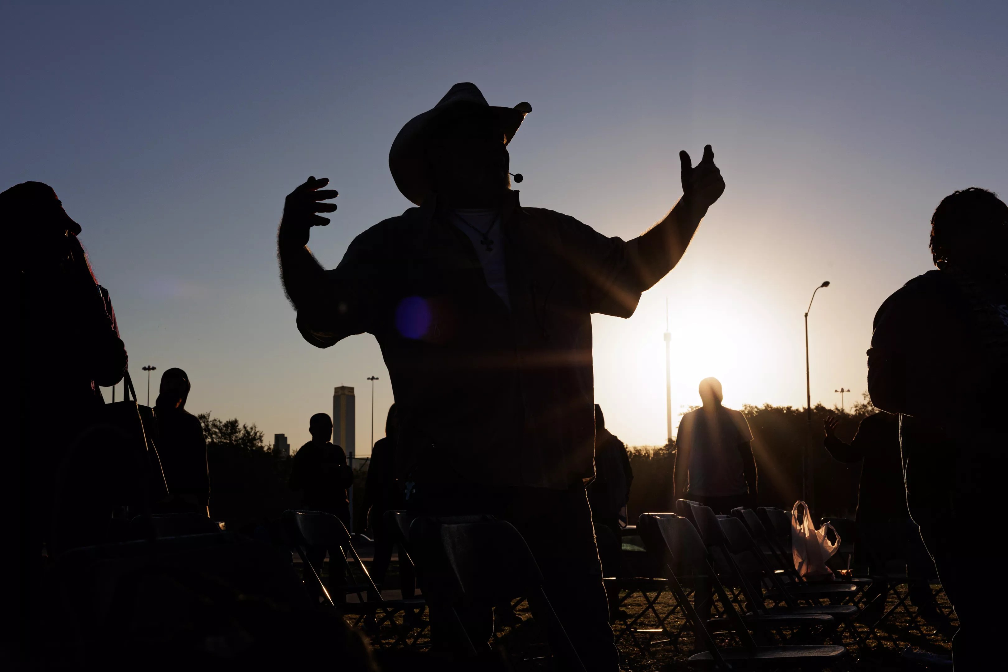 The congregation meets outside near Fair Park.
