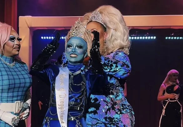 Jessy B. Darling was crowned Draggieland’s queen in 2022. Her winning performance was inspired by the children’s film “Megamind,” which follows a blue, bald super villain.
