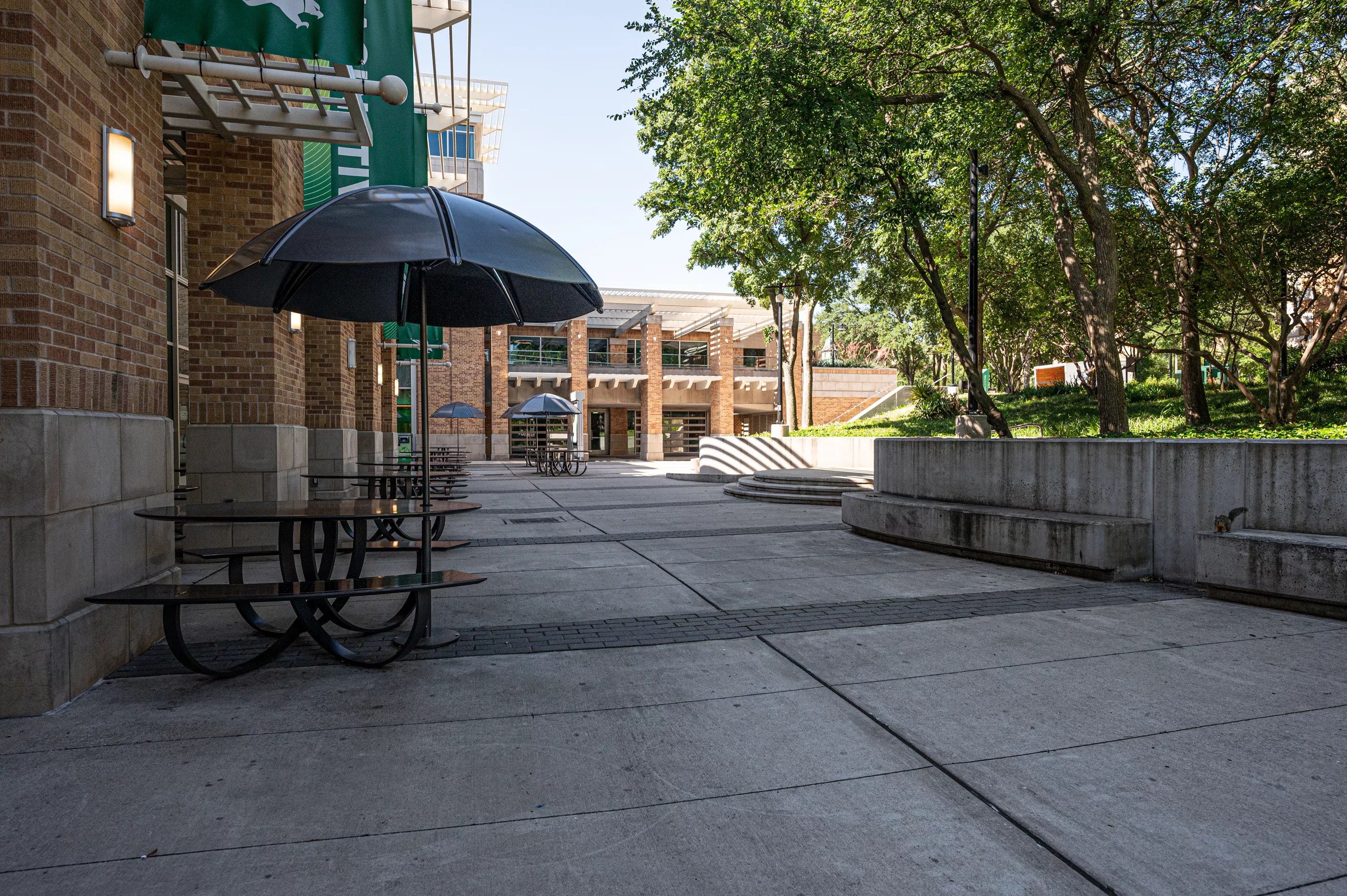 The student union area is devoid of students and may be sparsely populated in the fall.
