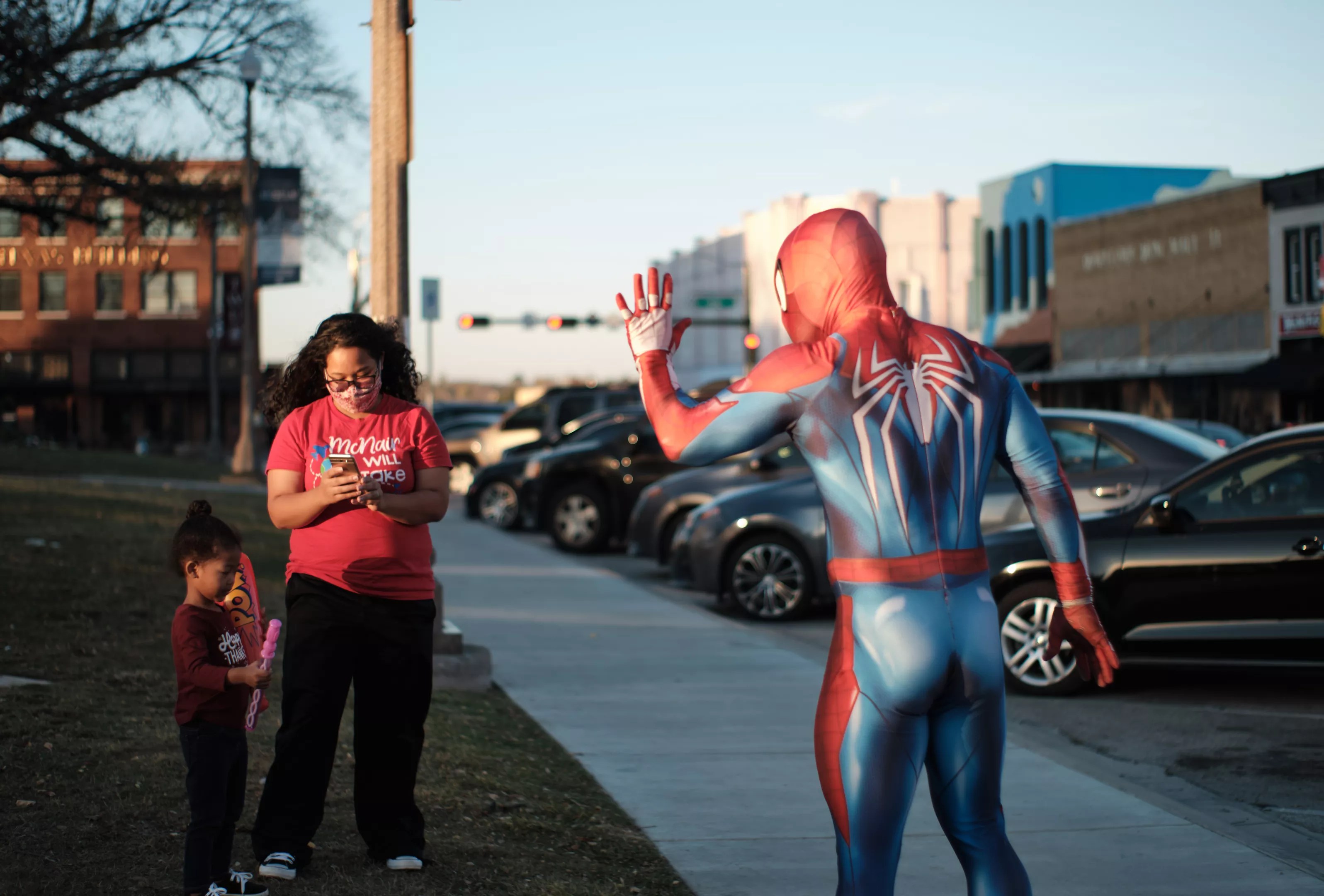 Kids enthusiastically wave as they walk by and even adults ask if they can take a picture with him. To the Denton Spider-Man, there’s nothing better.