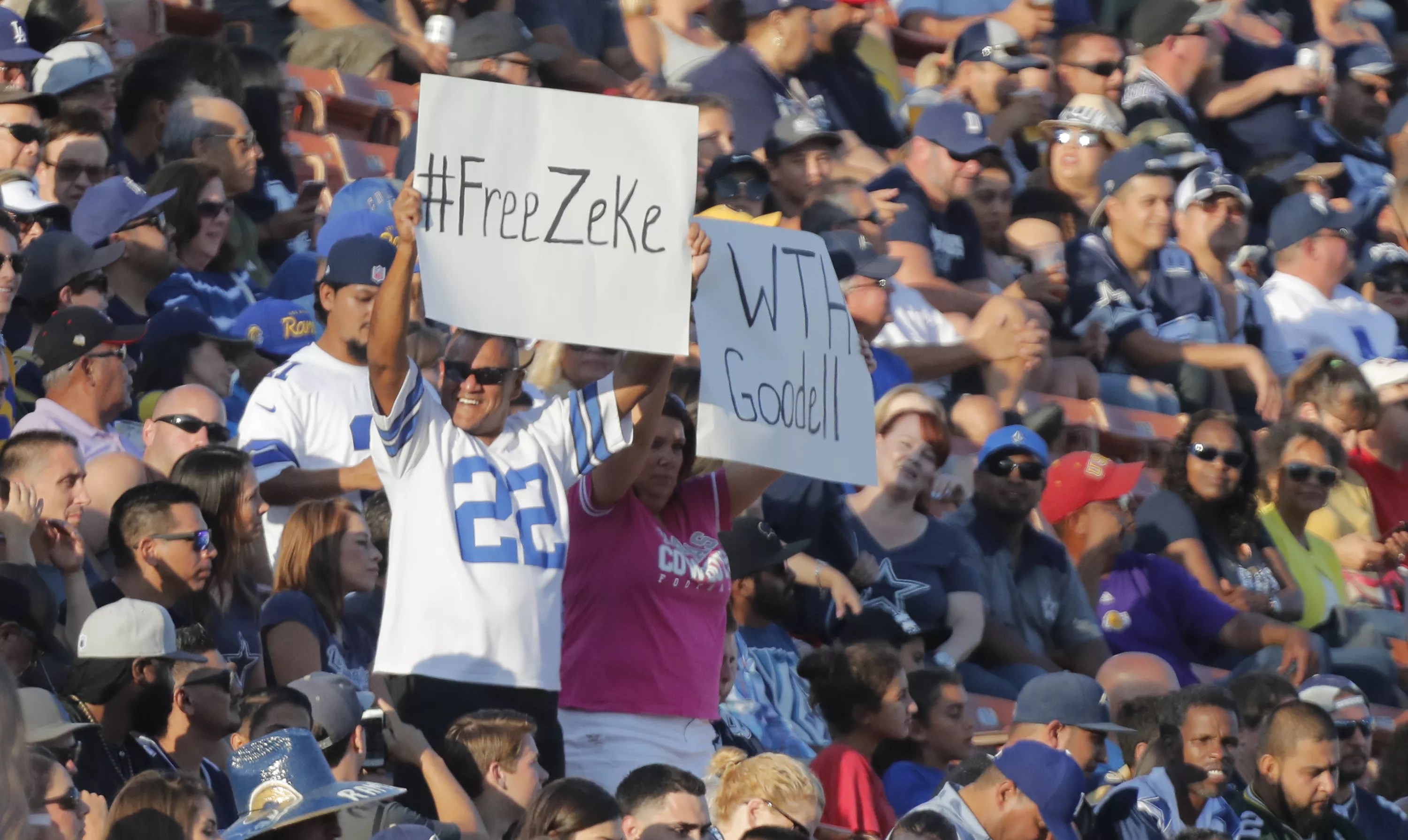 When training camp began for the Cowboys a week later, there was hope that a return to football would slow everything down for Elliott. As camp got underway in Oxnard, California, a consensus developed among local and national media covering the Elliott saga that Goodell would hand out his verdict during the week after the Cowboys’ appearance in the Hall of Fame game Aug. 3. Goodell, the thinking went, wouldn’t want to upstage Jones’ Hall of Fame induction by suspending one of the Cowboys owner’s best players.