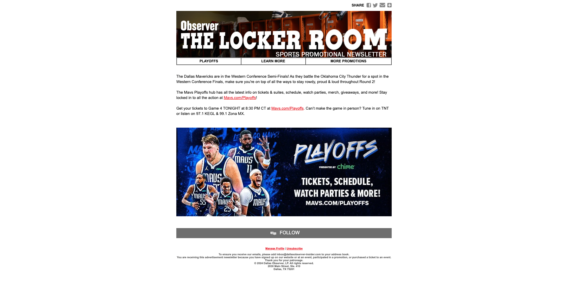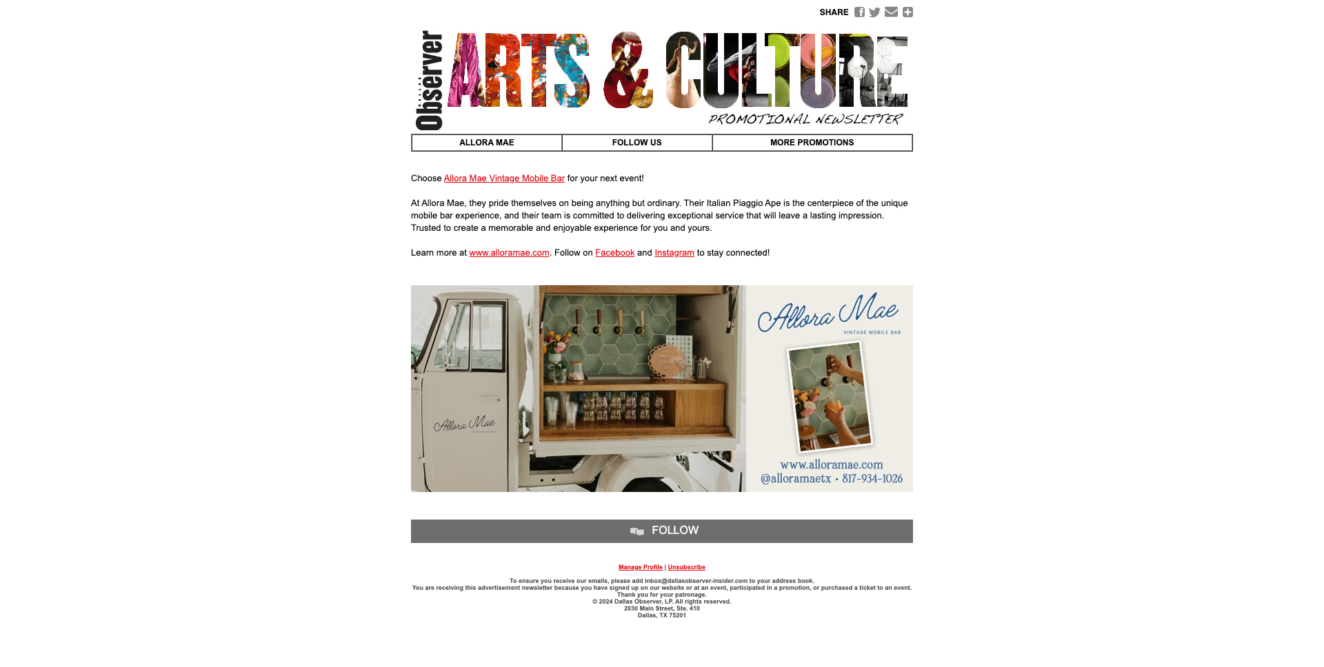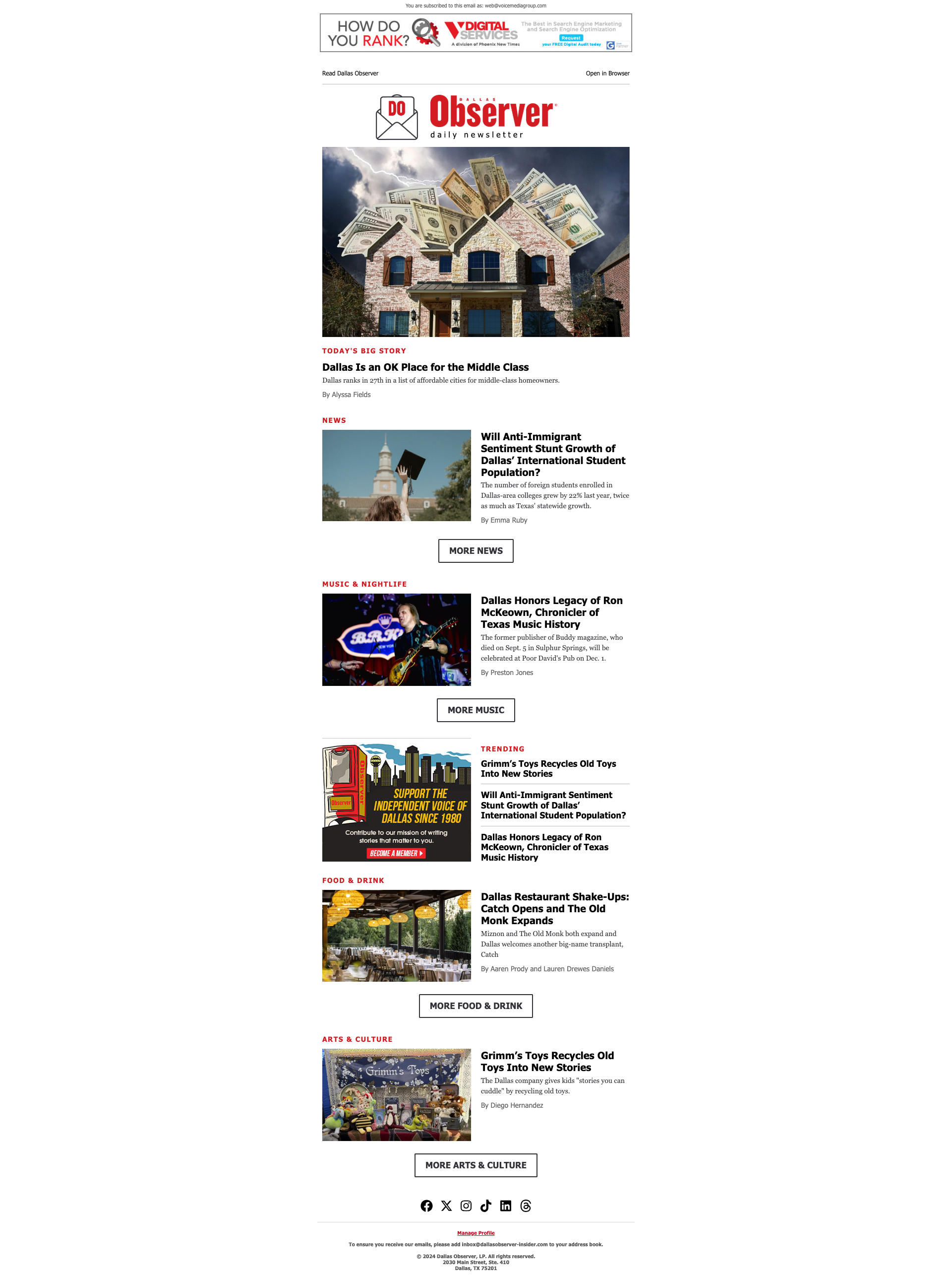 Stay informed with our daily digest of the most popular news, music, food and arts stories in Dallas. Delivered every morning Monday through Friday.