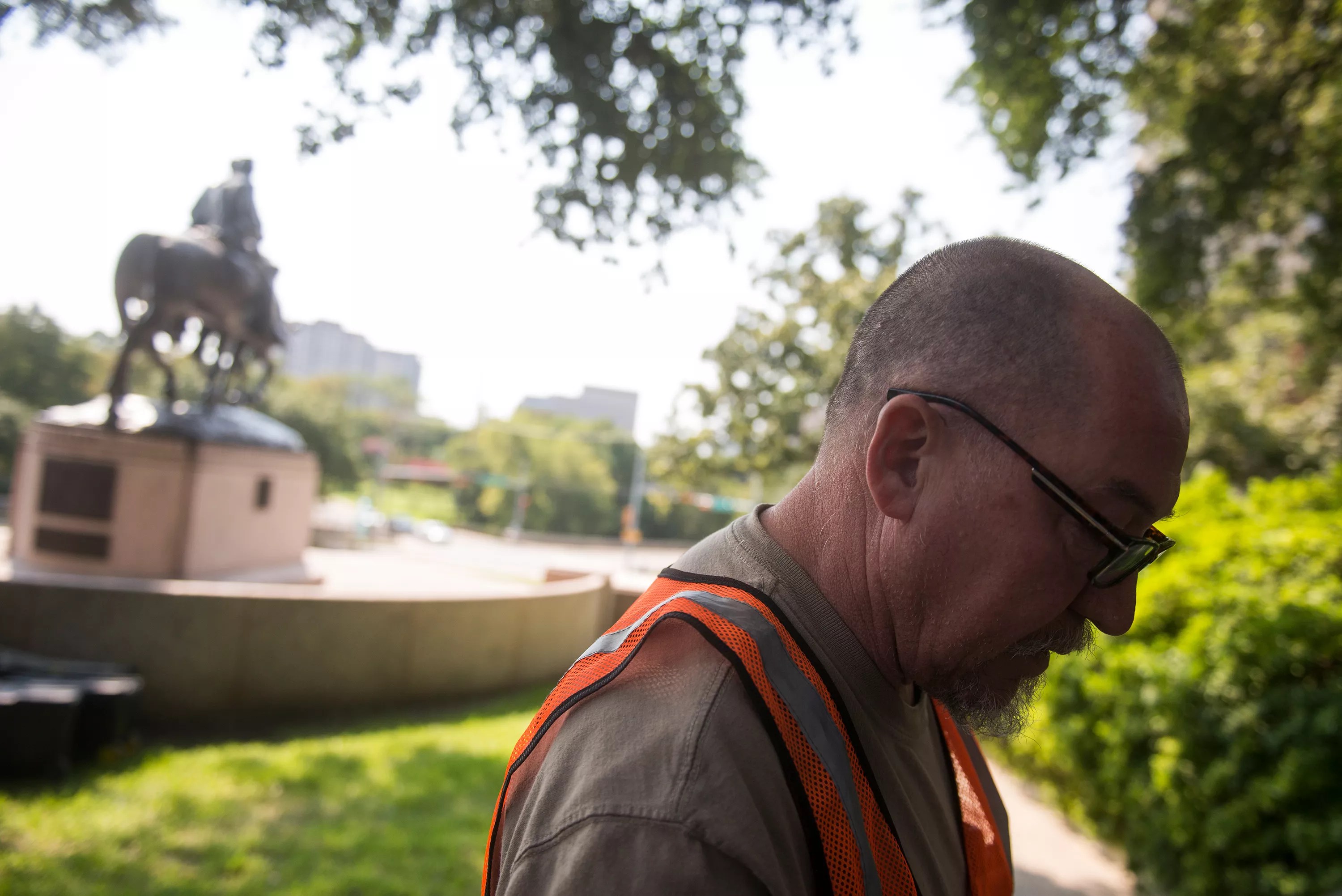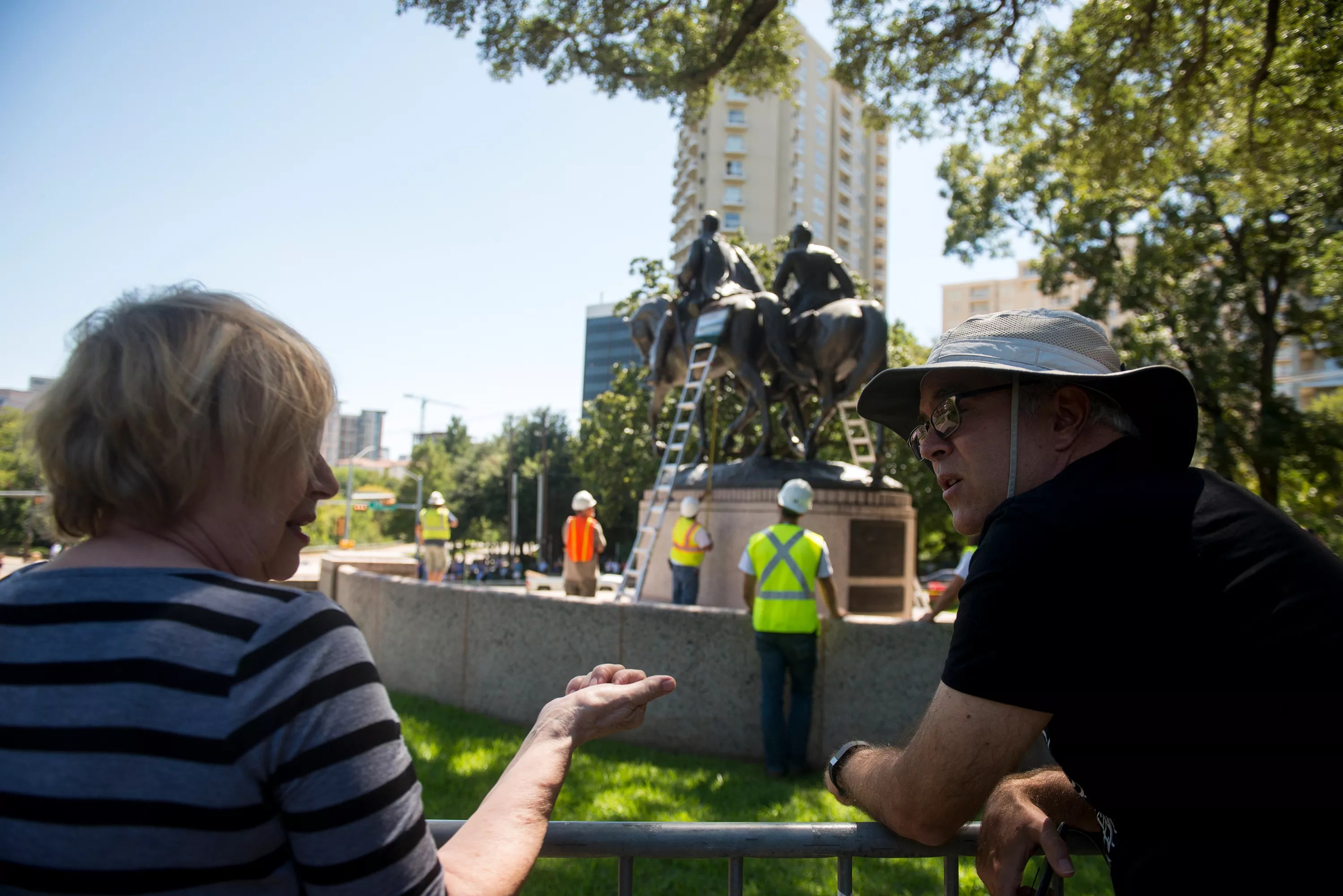 Working on removing the statue at Lee Park in Dallas.