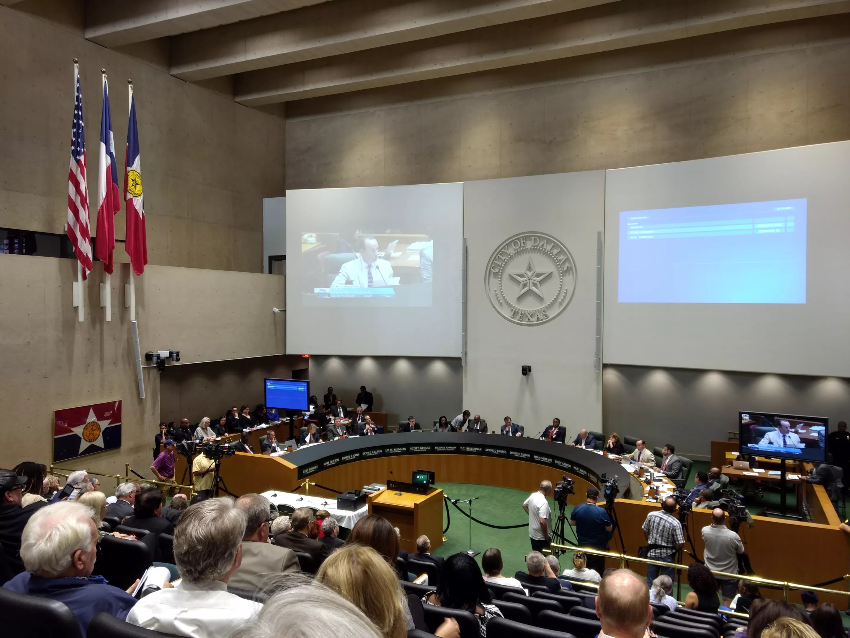 City Council Member Jennifer Staubach Gates advocated strongly to have the statue removed. Council Member Rickey Callahan, to her left, exited the council chamber just before the vote to avoid officially declaring himself.