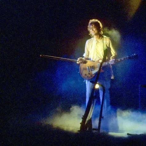 Our great friend Mark Bowman, a Houston photographer, would sometimes sing it with us when he visited the apartment. On March 21, 1985, The Firm (Jimmy Page and Paul Rodgers) played Houston, and Jimmy gave Ronnie, Mark and me seats onstage near his playing spot. Mark and I took pictures.
