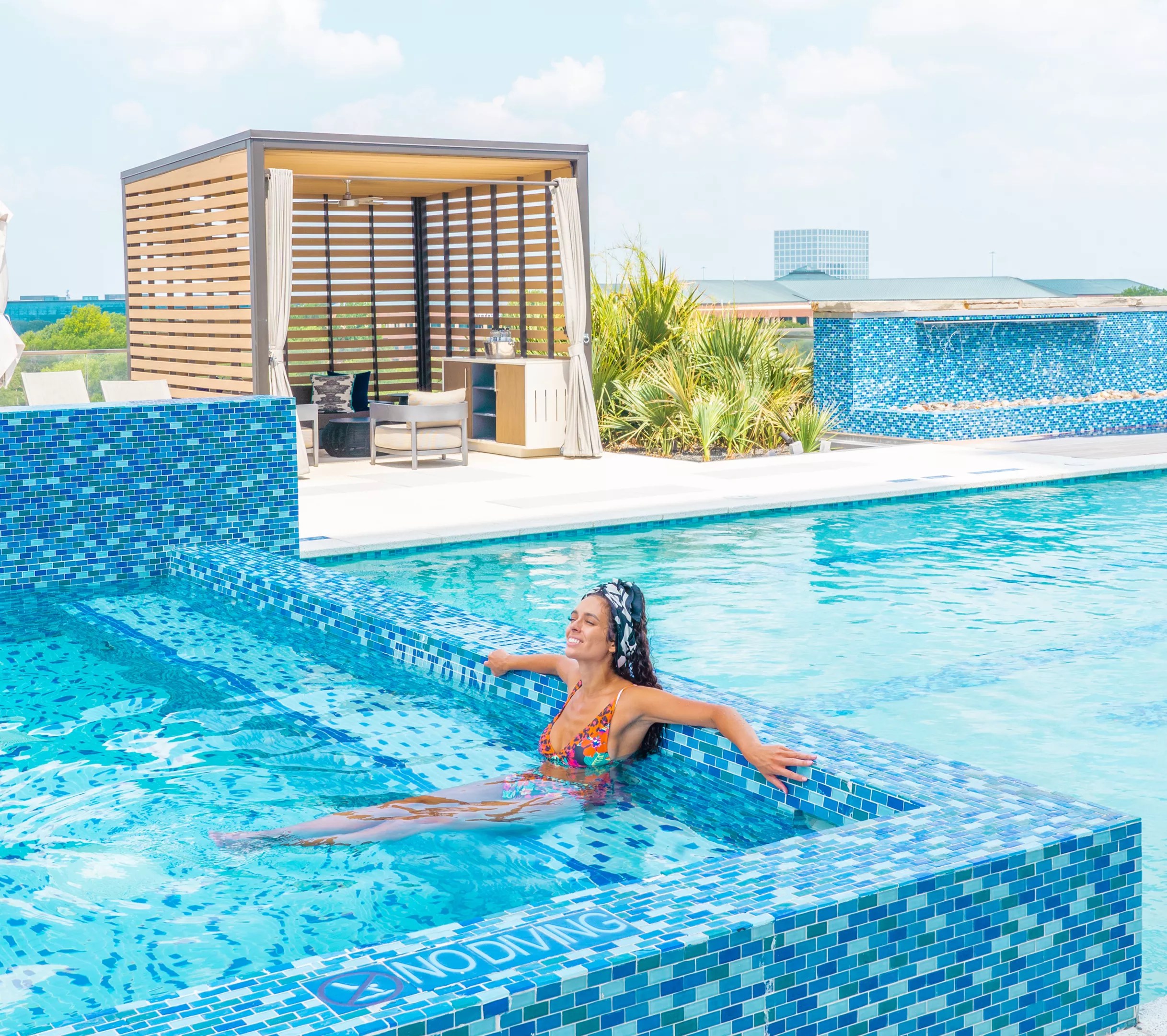 The Renaissance Dallas Hotel in Plano is a luxurious retreat that offers an upscale experience with its modern, stylish design. Equipped with lush landscaping and comfortable loungers, the stunning pool area is a serene oasis where guests can unwind and soak up the Texas sun without burning on the spot.