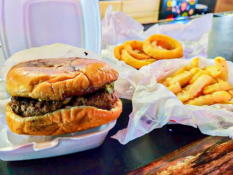 Blackjack’s cheeseburger with fries and onion rings. If you have to choose, get the latter.