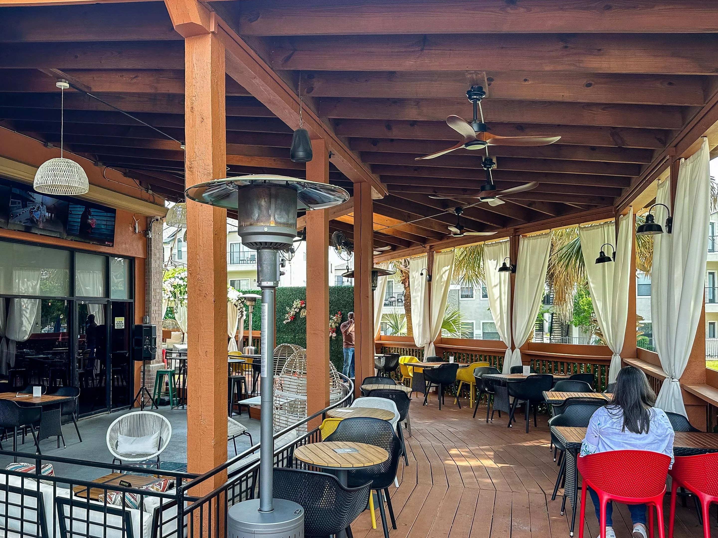 This fusion idea is carried over to the menu and the décor, which includes a large outdoor covered patio complete with comfy chairs and couches, along with palm trees lining the perimeter. It was a beautiful spring day, so we decided to try the place for some late-afternoon bites and drinks while camped out on the patio.