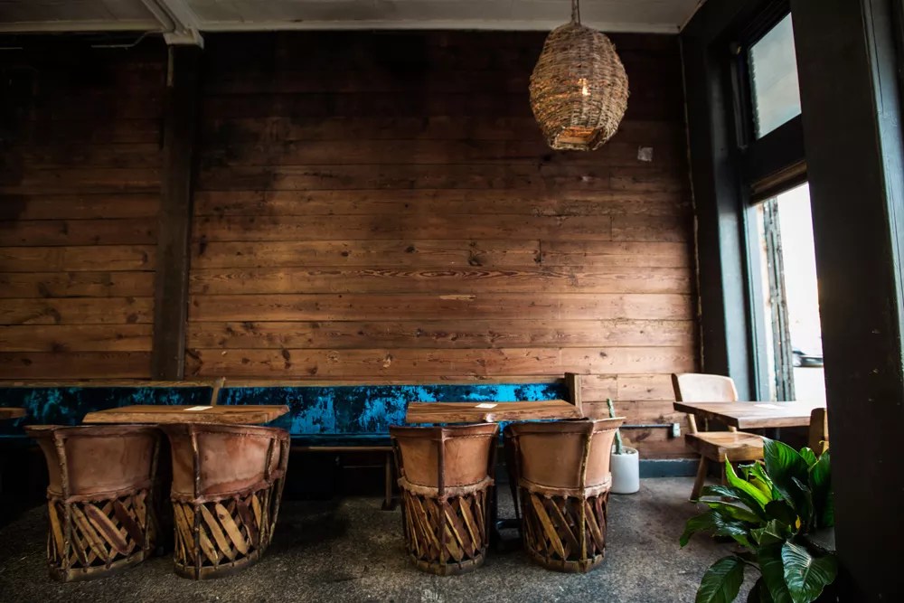 The new space is country rustic yet city chic. The walls are covered in wooden planks, and the chairs are covered in rawhide, but the repurposed church pews along the wall are cushioned in cozy blue velvet. The bar plays exclusively Latin music, including Puerto Rican Reggaeton, Mexican tropical bands and Daddy Yankee. In the back, behind a lush red velvet curtain, is an intimate, reverent, candle-lit back bar usually open for tasting events or when the main bar gets busy.