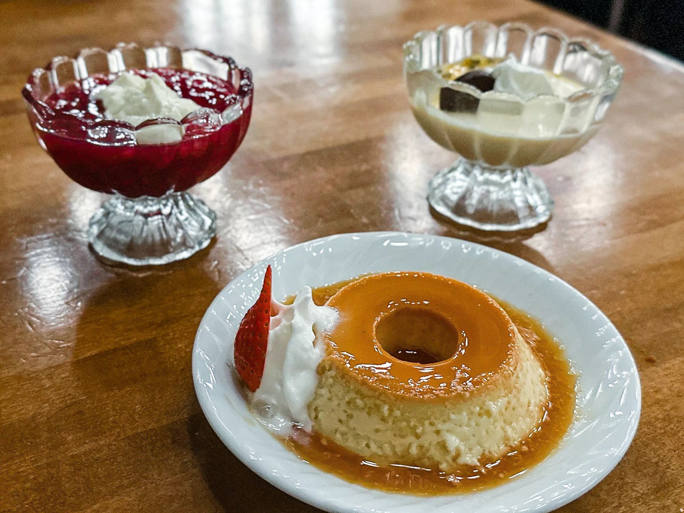 Desserts: flan, sagu com creme and mousse de maracuja.