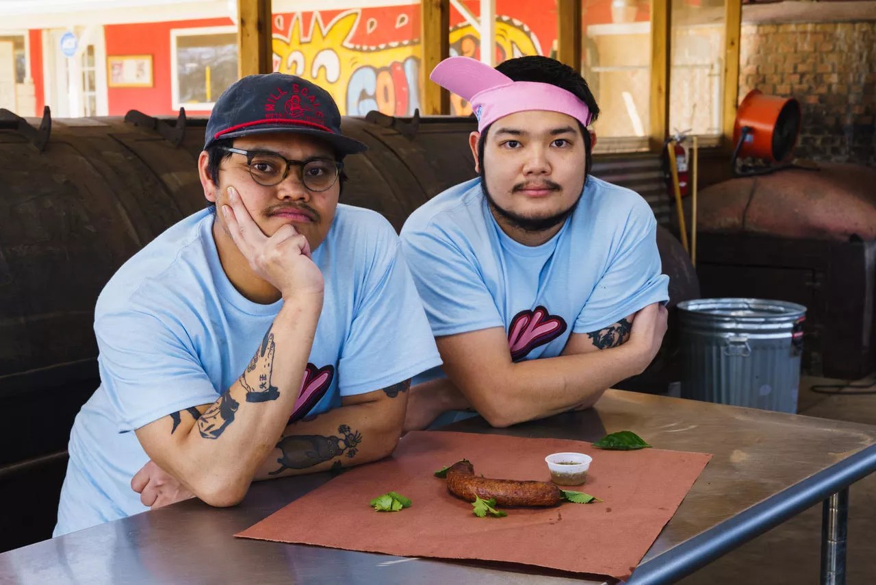 Nupohn Inthanousay (on left) with his brother Nudohn grew up eating Lao food and are infusing it into their work at Goldee’s Barbecue.