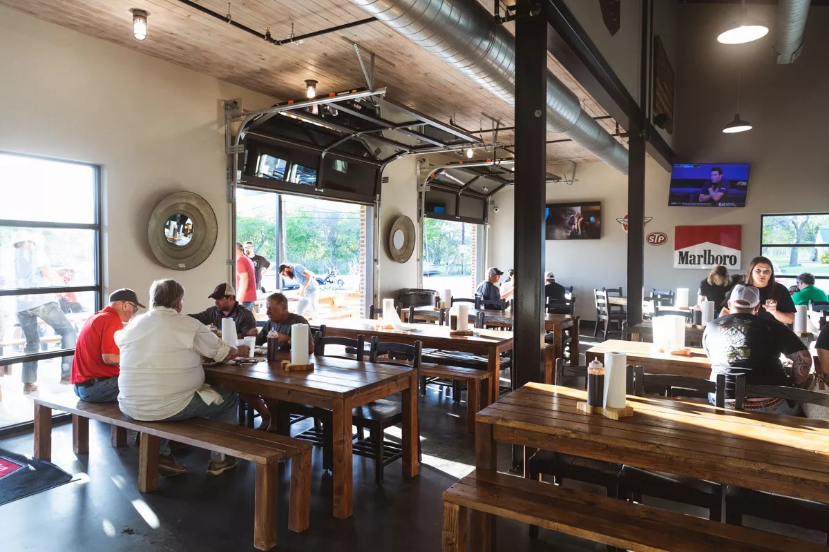 Smoke Sessions’ spacious dining room seamlessly blends indoor and outdoor dining.