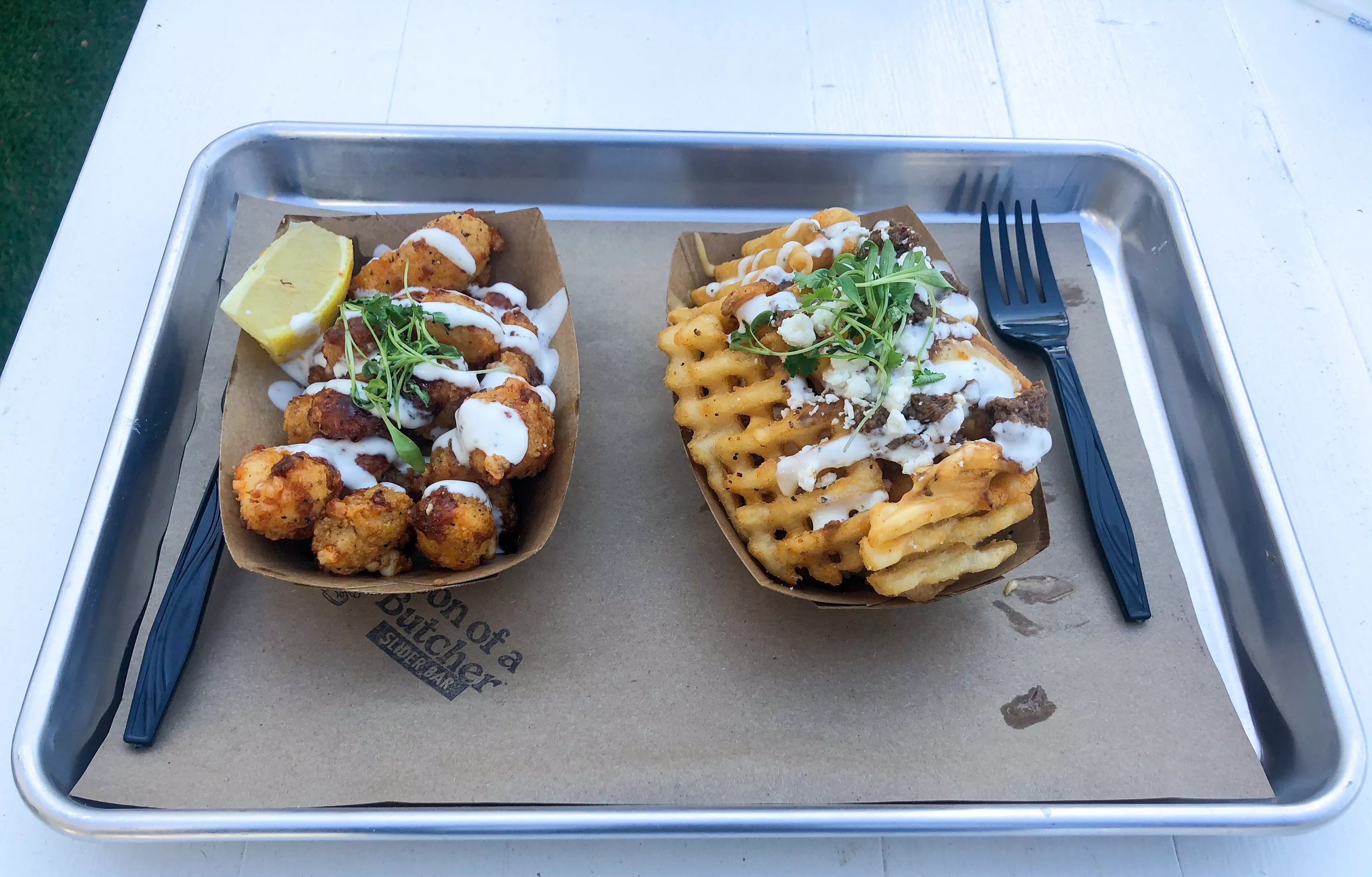 The new Son of a Butcher is aimed to be optimized for COVID safety protocols. There’s a pickup window (not a drive-thru) on the side of the building where customers can pick up their online orders to take home. They will also partner with GrubHub, Favor, DoorDash and UberEats for delivery.