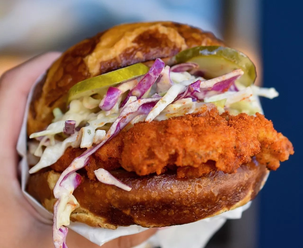 In the fried chicken universe, arguably, the hot chicken sandwich is the centerpiece. It is spicy, crunchy and a perfectly designed combination of flavors that’s rarely messed with. You know what sounds good right now? Two buns, a cut of hot chicken, a thick, crunchy pickle, some signature sauce and a scoop of coleslaw. You know what will probably sound good tomorrow, too? That exact same thing.