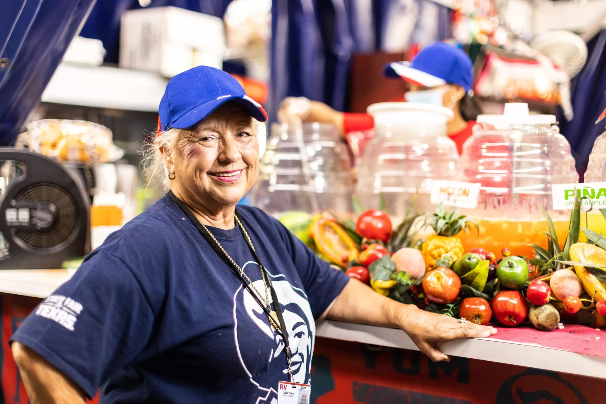 Lupita Valerio won’t stop smiling. Even though she’s 66 years old and has been on her feet since 5 a.m. and the sun has already sunk far below the horizon, leaving the giant Ferris wheel as the brightest object in the sky, she just won’t stop smiling.