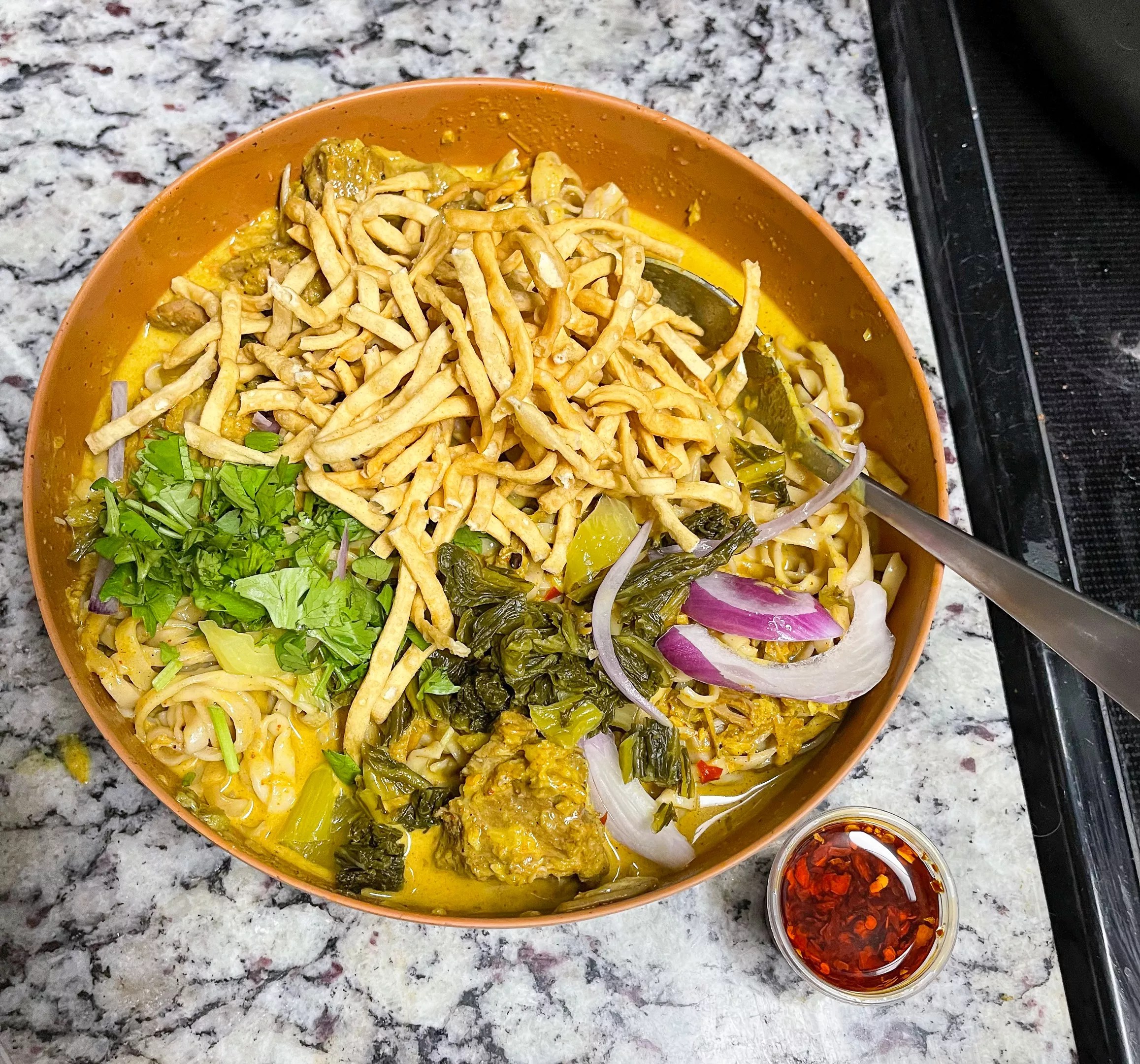 She’s been popping up at the Northeast Dallas bakery for months, with a recent event offering her wonderful khao soi. This is one of those dishes that when you see it on a menu, you should order it. It’s a comforting bowl of rich curry with coconut milk topped with a variety of textures including crunchy egg noodles, pickled mustard, red onions and cilantro. Beneath are fresh noodles, and you’ll get a protein – Hangtagool’s was a super-tender, slow-cooked beef.