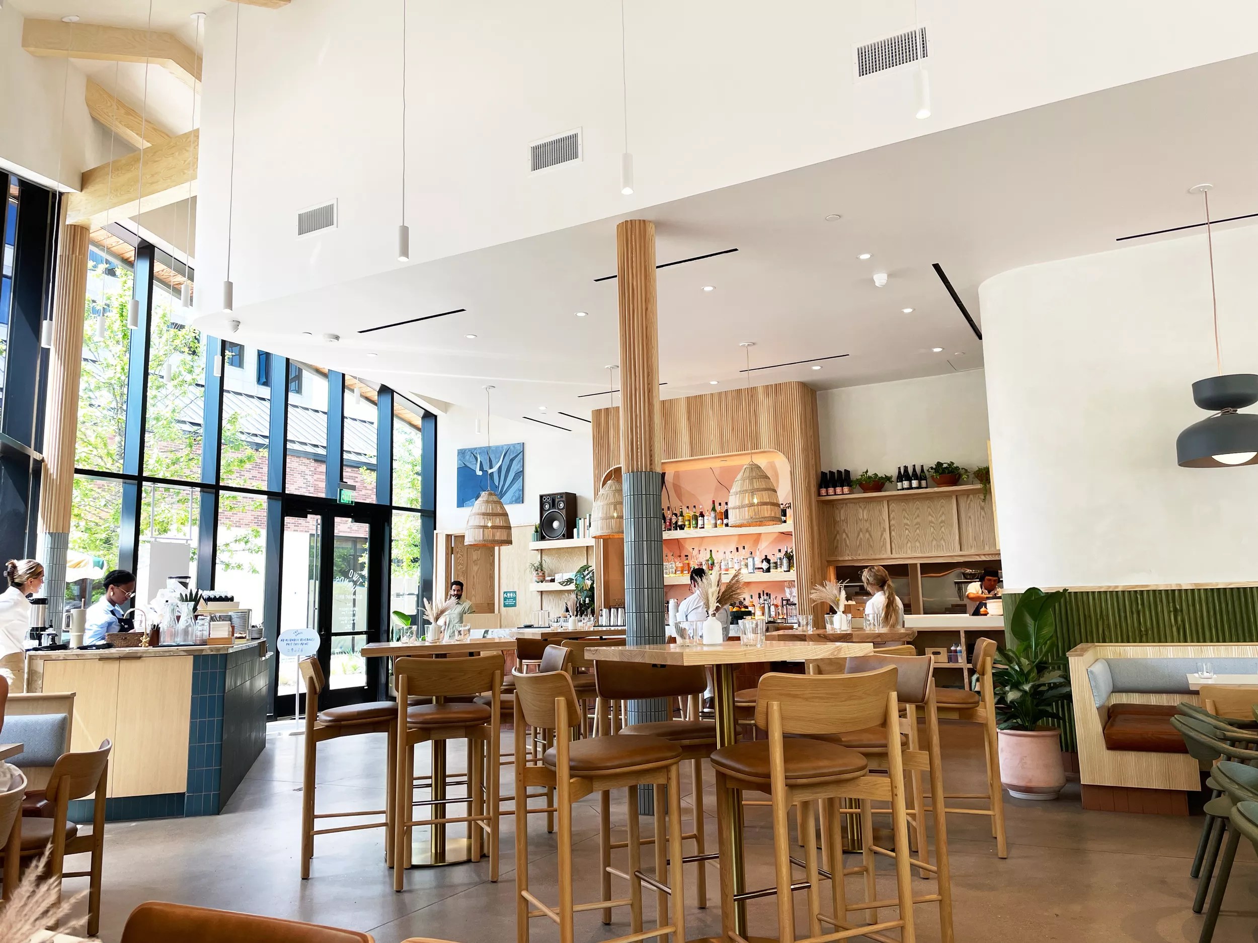 Outside, there’s a patio that’s not a good idea right now but will be in a few months. Inside, there is bar seating, booths and high-top tables, which cater to a variety of occasions. They also have a barista counter inside that doubles as its own coffee shop for to-go drinks and pastries.