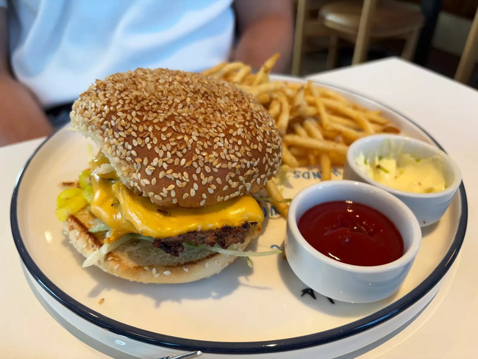 The best things we tried were the Two Hander burger, pork belly and cheddar croquettes, warm marinated olives and last but most certainly not least, the coconut and key lime pavlova, which could be the crown jewel of the entire menu.