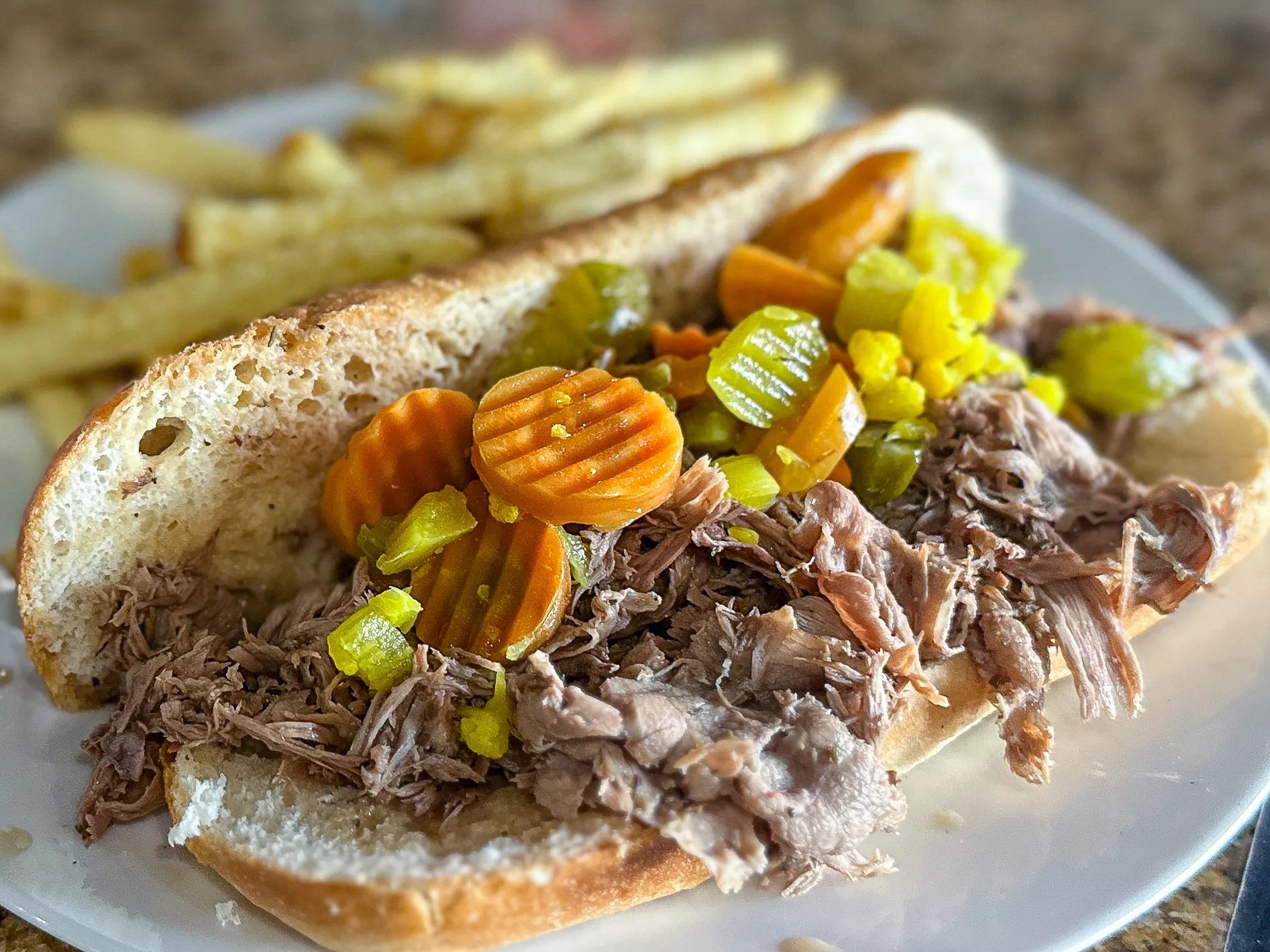 There was some disappointment when the sandwich arrived. It was a generous amount of beef, but it was just plopped on a bun, and had neither gravy nor au jus. The beef didn’t appear to ever have lived in a peppery bath of seasoning and juices. Also, there was no giardiniera at all on the beef.